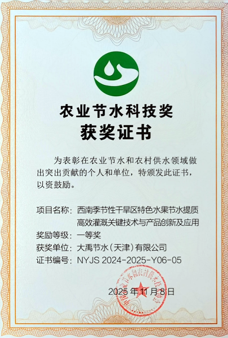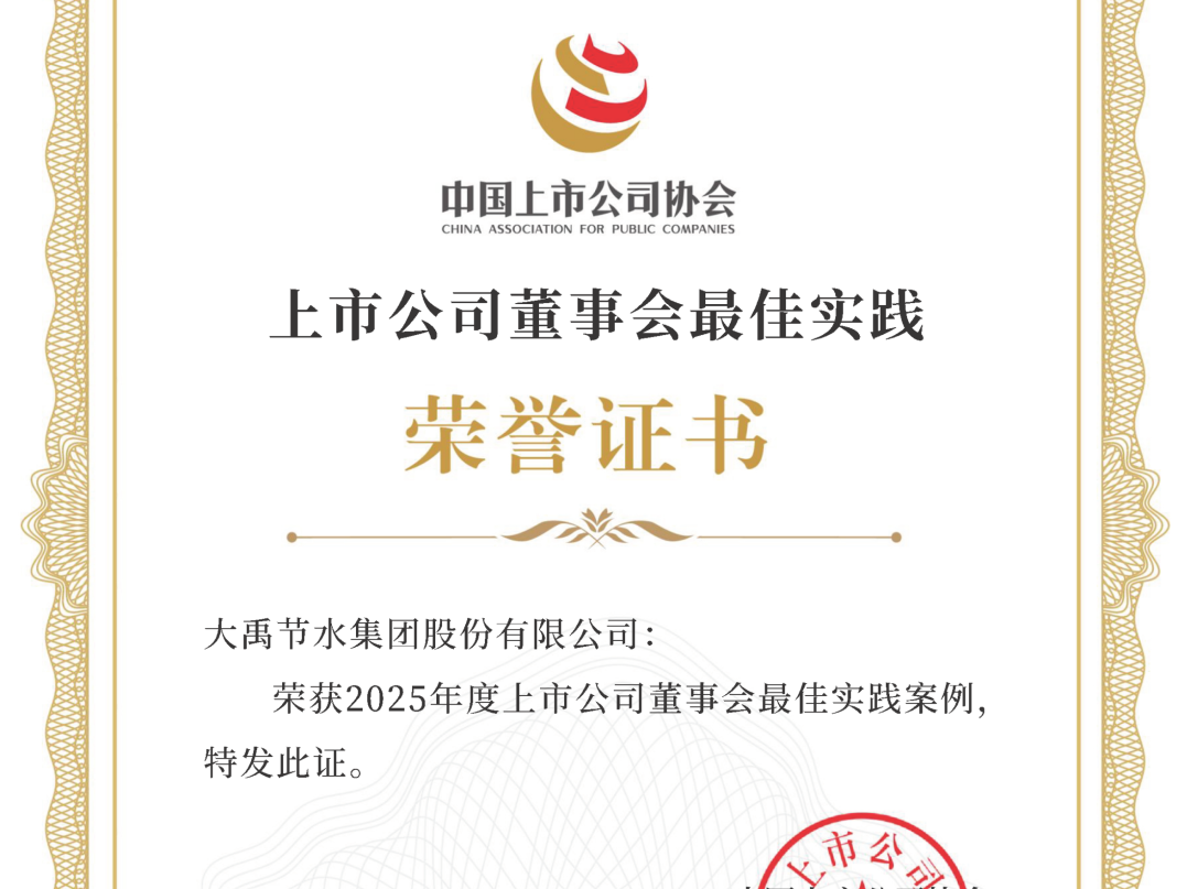 2025年,大禹节水行业内领军地位愈发稳固。不仅收获国家部委的高度认可,更在资本市场、信用评级及数字农业领域屡获殊荣。这是大禹节水综合实力与品牌信誉的集中体现。