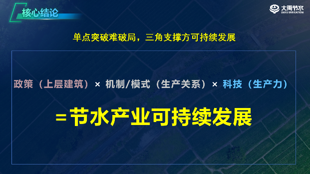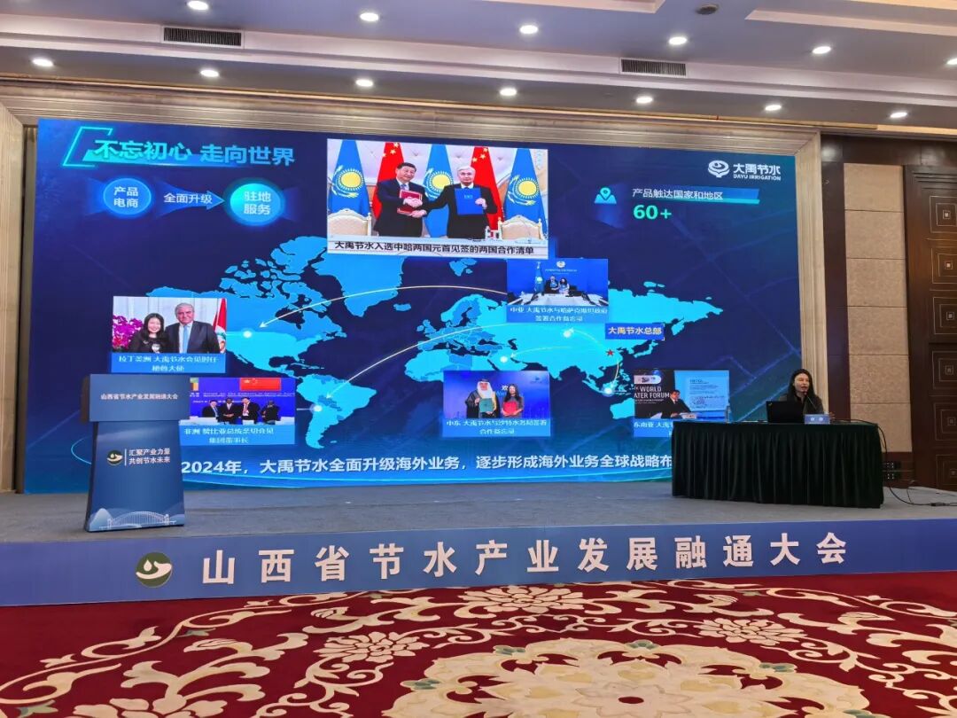 演讲中,崔静详细介绍了大禹节水的全产业链布局与实践成果。公司深耕节水领域30年,构建了涵盖规划设计、装备制造、工程建设、运营管护的完整服务体系,打造了元谋模式、彭阳模式等多个标杆案例,通过“EPC+O”“三水共治”等创新模式,实现节水、节肥、省工与增产、增收、增值的多重效益。同时,公司依托院士专家团队与产学研合作平台,在数字孪生灌区、水肥一体化、智能量测等领域持续突破,相关技术已应用于全国数千万亩农田,并成功出海至60多个国家和地区。