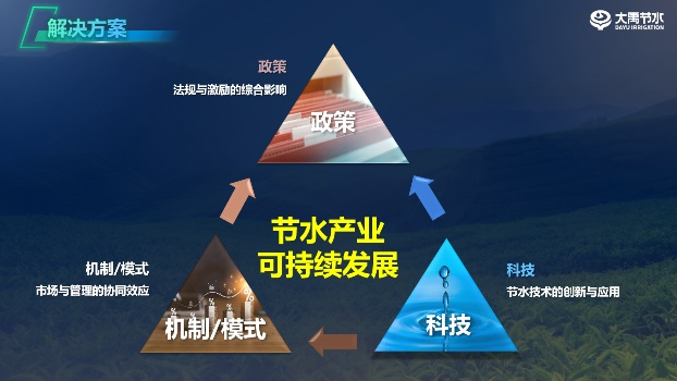 崔静在演讲中指出,节水产业可持续发展需依托“政策×机制/模式×科技”的三角支撑体系。当前全球节水产业加速发展,中国已形成覆盖多领域的全产业链,政策层面明确2027年节水产业规模将突破万亿元。针对山西水资源总量不足、时空分布不均、农业用水效率偏低等现状,她强调农业作为节水主战场,需通过技术革新与模式创新破解发展难题。