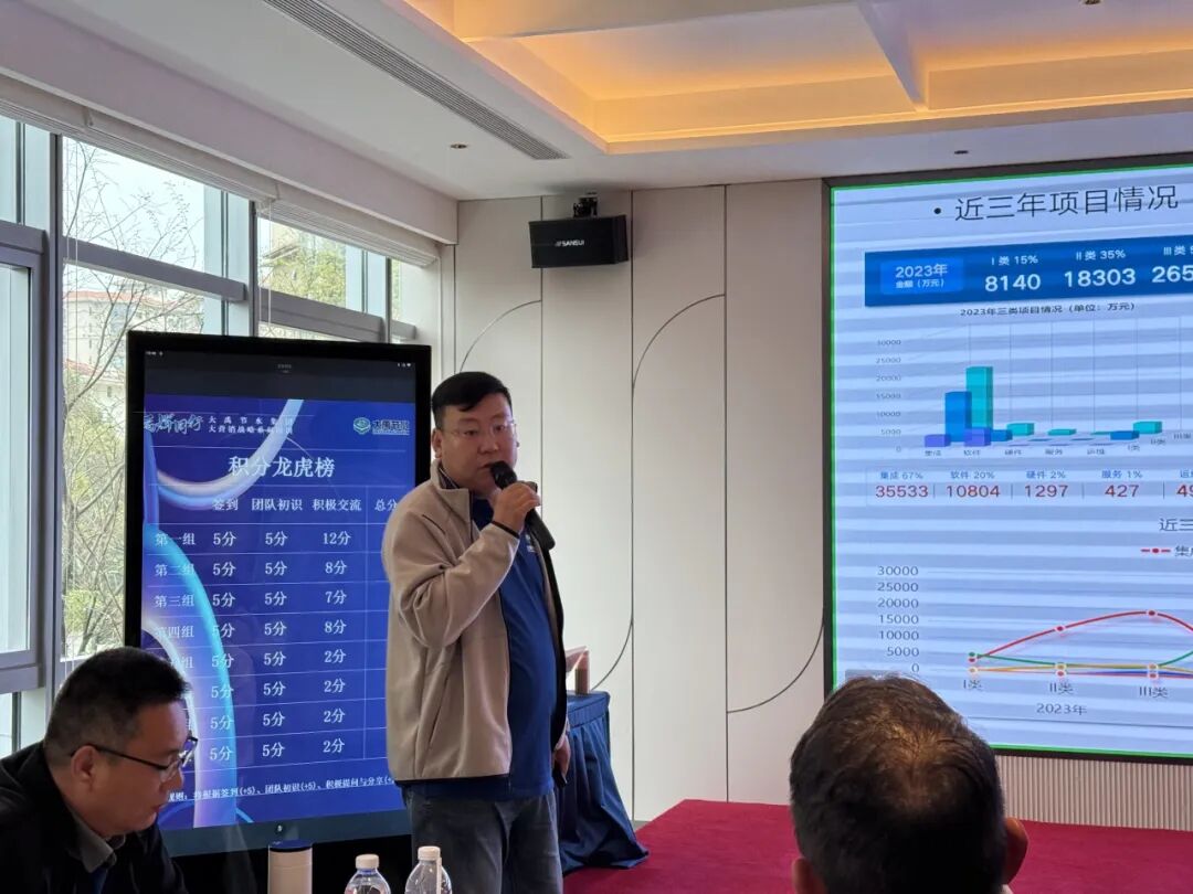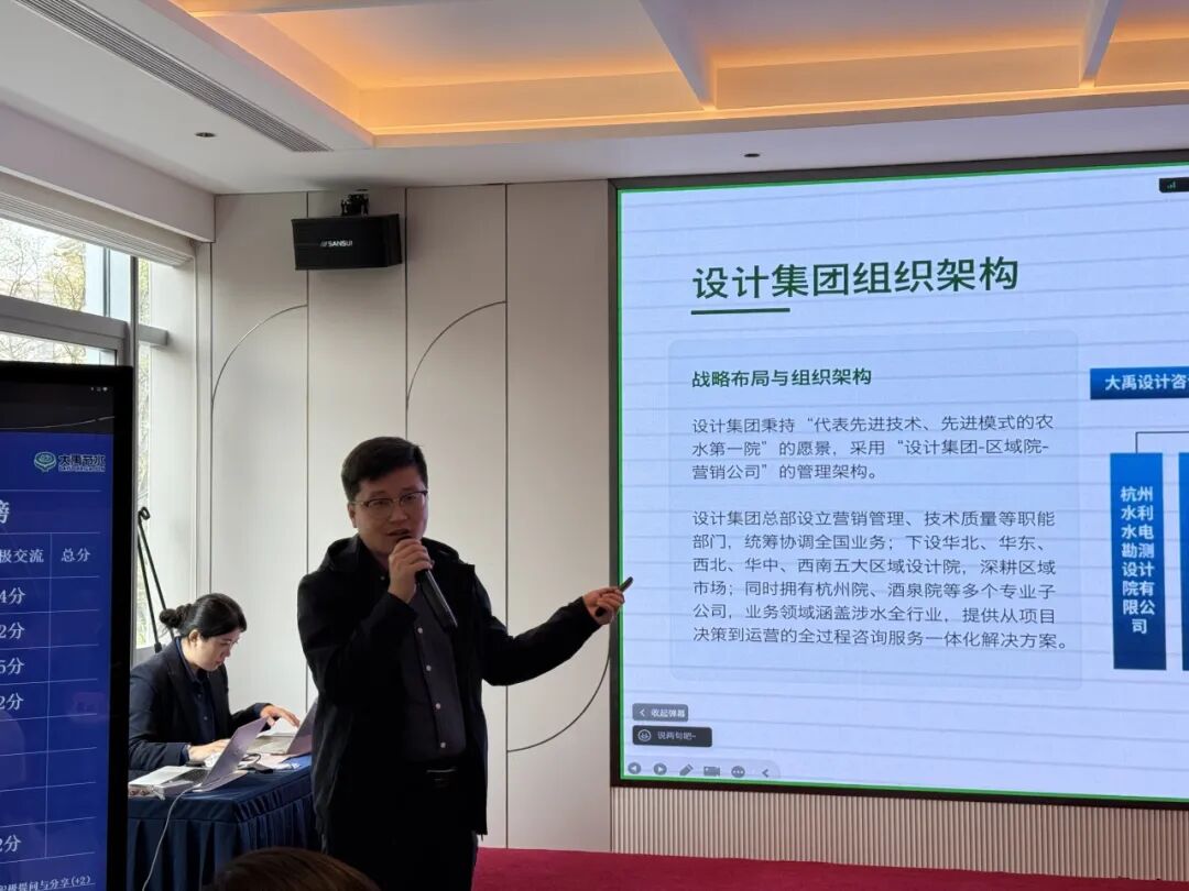 业务分享环节,各板块讲师依次登台,结合自身特点与实战经验,带来干货满满的业务分享。张国祥、魏龙、刘梓新分别分享节水集团、设计集团、淮安水利院的业务拓展思路与实战成果;张晓燕、张伟联袂解读慧图集团的市场布局与攻坚技巧;何震针对装发集团区域业务特性分享开拓方法;蔺彦军、常俊则聚焦水管家、农业事业部,结合区域农业与水利发展需求,讲解贴合区域实际的业务拓展路径。各位讲师的分享既有理论高度,又有实操价值,覆盖业务介绍、市场洞察、客户管理等多个维度,让参训人员在交流借鉴中拓宽思路、汲取经验,实现了各板块业务经验的深度融合与高效传递。
