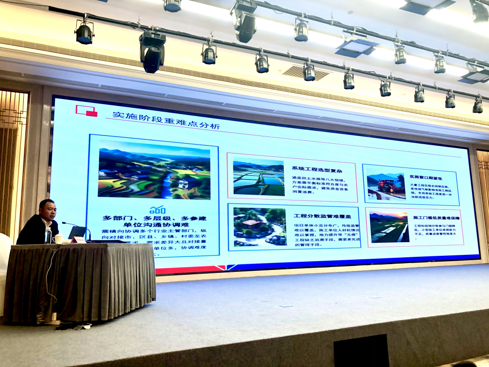在政策标准解读环节,农田中心农田工程质量监督处处长陈正、农田建设验收评价处牵头人曾勰婷、中国农业大学土地科学与技术学院副教授汤怀志分别围绕《逐步把永久基本农田建成高标准农田实施方案》《高标准农田建设项目竣工验收办法(试行)》《高标准农田工程设施管护办法(试行)》《高标准农田建设评价规范》等重要政策文件与国家技术规范,开展系统深入的专项解读。