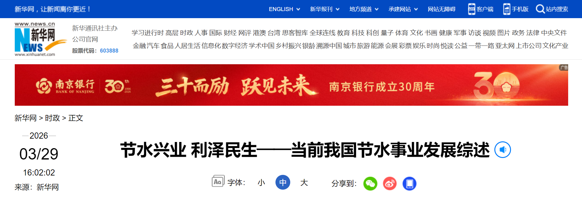 题:节水兴业 利泽民生——当前我国节水事业发展综述