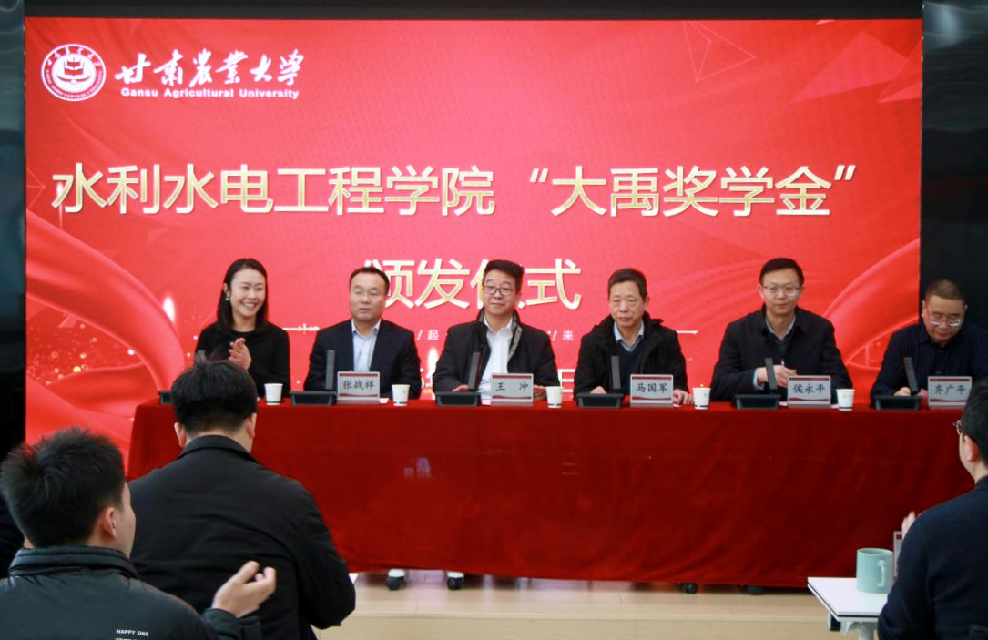 12月24日,由大禹节水集团股份有限公司设立的“大禹奖学金”颁发仪式在甘肃农业大学水利水电工程学院隆重举行。甘肃农业大学党委常委、副校长马国军,大禹节水集团党委书记王冲、西北总公司总裁张战祥出席仪式。水利水电工程学院党委书记刘娟主持活动。