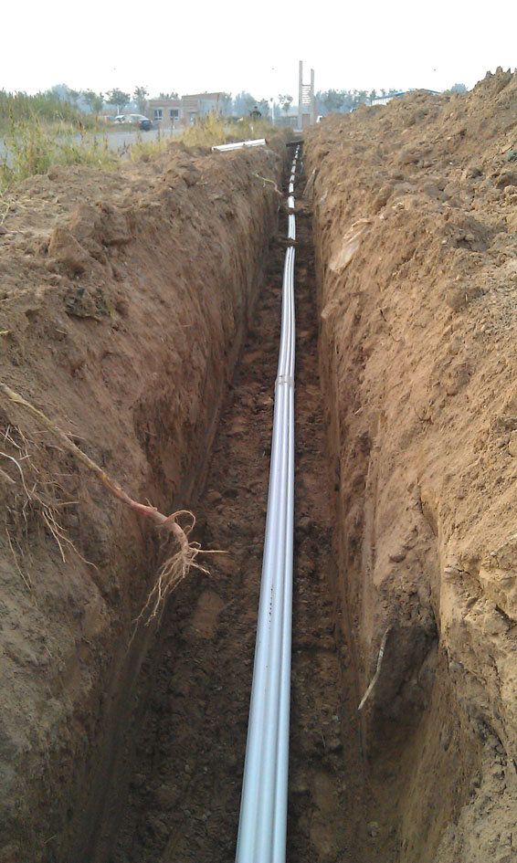 4.厂区弱电、监控工程:外网路有三条管线,现挖沟、管线铺设、过路穿越铺设完成,正在进行周界报警线缆铺设。
