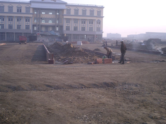 11、道路工程—道路及广场开挖完成,戈壁料回填完成,正在进行道路水温层的铺设工作。