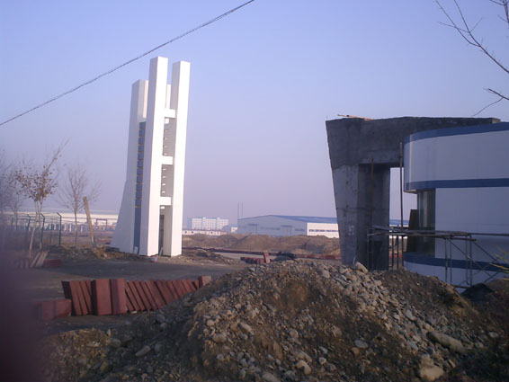 10、门卫室—地下基础工程,地面钢筋混凝土柱浇筑、砖砌体工程已完成。室外散水,室内地面工程完成。门窗安装完成,正在进行微晶石的干挂工作。
