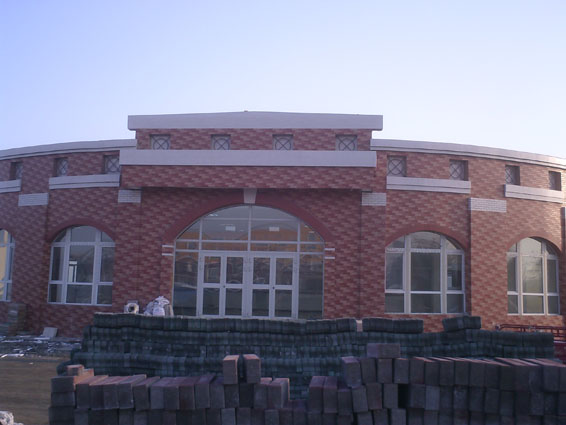 7、食堂—基础部分完成,梁、板、柱混凝土工程完成,女儿墙的砌筑工作完成。基础维护墙砌筑完成,室内三七灰土回填完成。操作间、卫生间墙砖的铺贴完成,门窗安装完成,室内装修完成,室外墙砖的铺贴完成。室内采暖系统施工完成,正在进行调试。