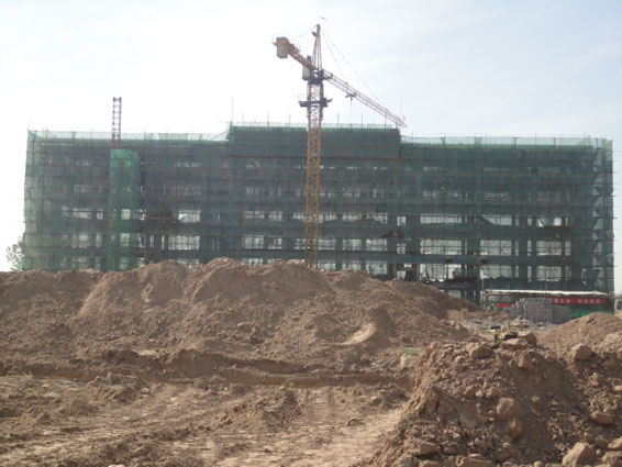 3. 生产楼一——一至五层框架主体工程已完成,六层柱钢筋的绑扎及脚手架搭设工作已完成。正在进行六层柱、梁、板混凝土的浇筑工作。