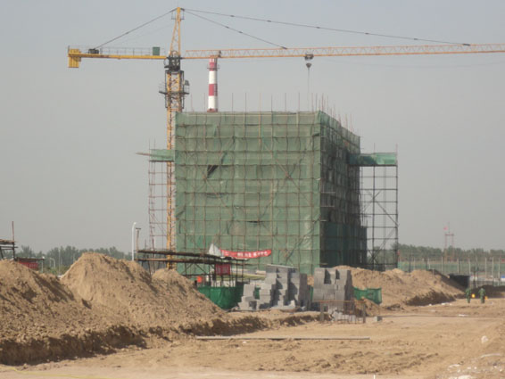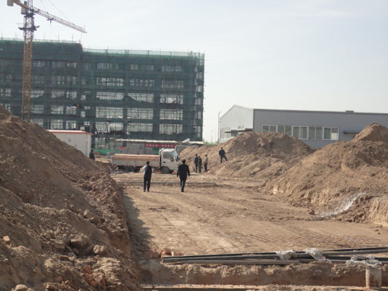 1. 厂区道路工程——场区道路基坑开挖完毕,部分地沟已砌筑,道路开挖完的基槽三七灰土全部拌制完毕,正在进行地沟的砌筑工作。