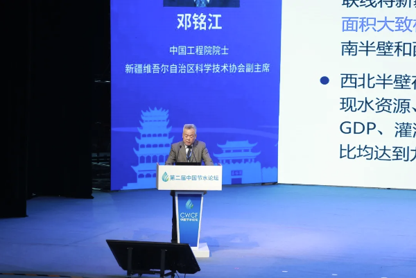 中国工程院院士、新疆维吾尔自治区科学技术协会副主席邓铭江做了题为“西北‘水三线’空间格局与区域协调发展”的主旨发言。他指出,实施西北大开发有三个背景,一是基于改革开放总设计师邓小平的两个大局的战略思想。二是2020年新世纪中央启动西部大开发。三是进入新时代,2020年中央颁发了关于新时代推进西部大开发形成新局面的指导意见。通过分析我国资源、人口、环境的空间分布格局,以胡焕庸线、阳关线、奇策线的资源环境提出了西部“水三线”建设的战略构想。并从水文气象与流域水资源等角度阐述“水三线”跨越了中华文明与黄河文化,河西走廊与丝路文化,欧亚大陆与西域文化的人文地理空间,是以地缘政治、区域经济、生态经济学和发展经济学作为理论基础的一种区域空间发展的战略。
