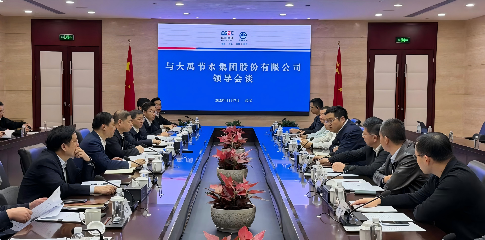 11月7日,大禹节水集团董事长王浩宇一行拜访中国能建葛洲坝集团,与中国能建葛洲坝集团党委书记、董事长谭华等领导举行座谈,双方围绕水资源综合利用、智慧农业与水利、水生态修复等领域,就项目化推进战略合作落地展开深入交流,并达成广泛共识。