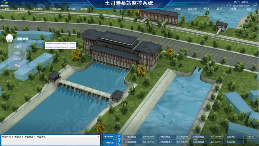 黄冈市土司港闸站工程坐落于黄冈市长河与长江沿岸长孙堤交汇处,是保障城市防洪安全、补齐城区排涝设施短板的核心民生工程。项目总投资4.52亿元,按“20年一遇15日暴雨15日排完”的高标准设计,肩负着长河流域289.5平方公里的防洪排涝重任,为区域百万群众的生命财产安全筑起坚固屏障。作为工程核心技术承建方,湖北慧图凭借自主研发的计算机监控系统(SCADA)与泵站数字孪生平台,为项目注入了强劲的科技动能。此次建设中,公司大胆突破传统二维SCADA系统的技术局限,创新性引入BIM模型,打造出集“三维可视化、实时数据驱动、沉浸式交互”于一体的智能管理体系,让水利工程运行管控迈入“透明化、智能化、高效化”新时代。