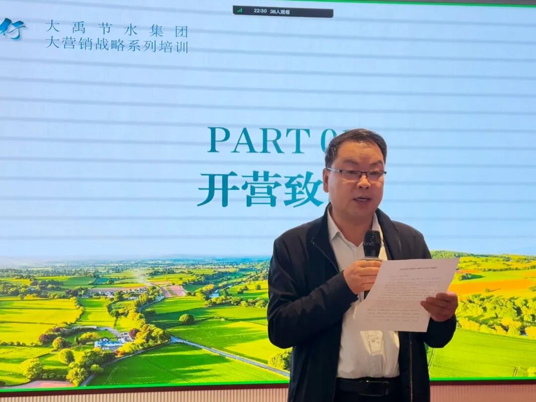 3月7日,大营销培训正式拉开帷幕。节水集团副总裁、西南总公司董事长徐希彬,节水集团西南总公司总裁王一文,集团市场营销部经理、节水集团营销总监赵越,各业务板块营销主管领导及西南区域全体营销人员参加培训。集团人力资源专业经理李楠楠主持。此次培训立足西南区域市场发展特性,聚焦跨板块协同壁垒破解、资源整合效能提升,通过政策宣贯、业务分享、协同共创等多元环节,打造了一场内容扎实、贴合实战的营销协同大练兵。