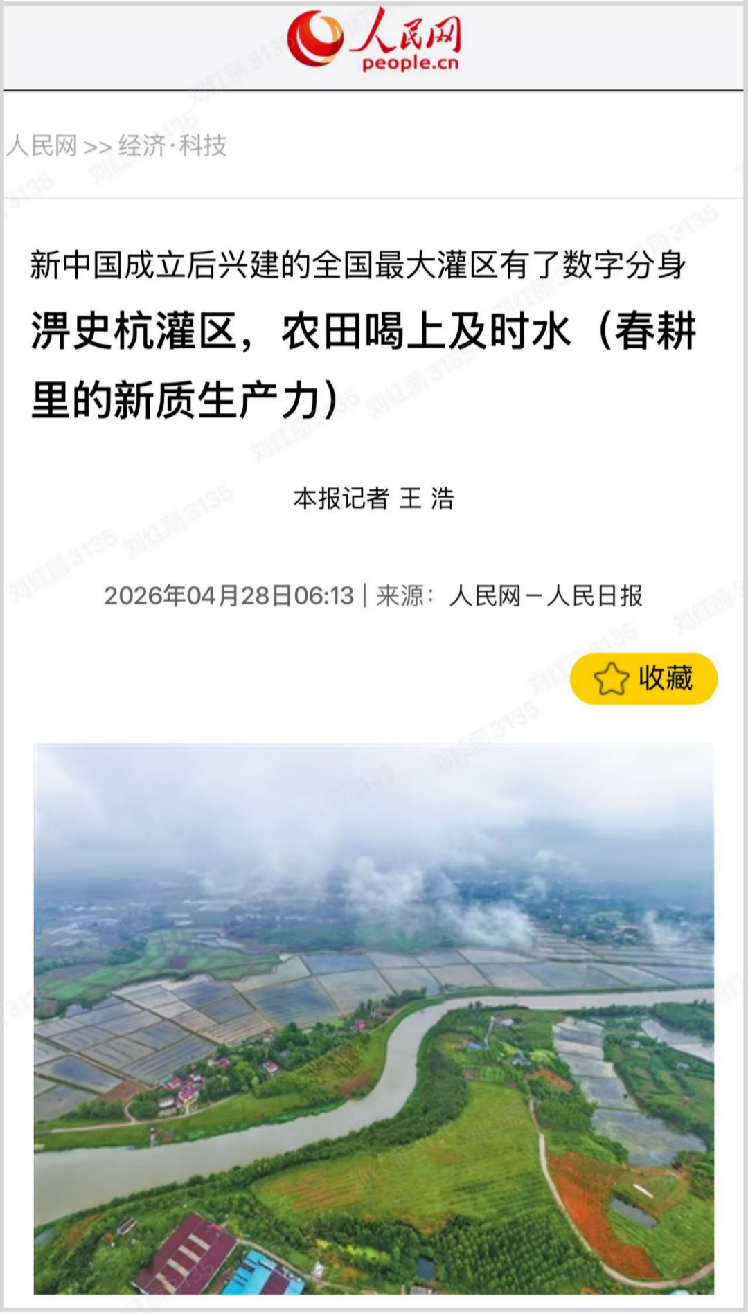 今日(4月28日)发行的《人民日报》,在要闻版,以《春耕里的新质生产力——淠史杭灌区,农田喝上及时水》为题,报道了这个新中国成立后兴建的全国最大灌区,通过灌区“大脑”——数字孪生平台,及遍及渠系田间的2063处水情站、1430处雨情站、40处墒情站,实现水情墒情的实时监测和调水配水的科学高效。