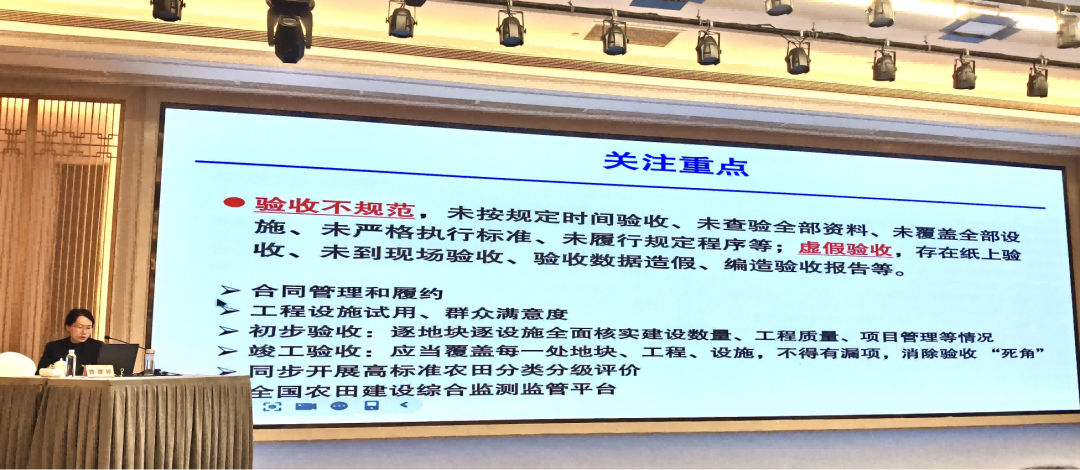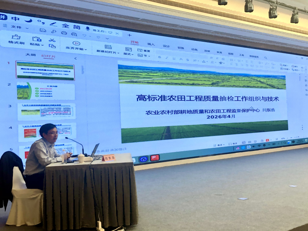 在工程质量抽检环节,农田中心农田工程质量检验处处长闫东浩详细讲解了高标准农田工程质量抽检工作的组织与技术,帮助参训人员掌握抽检工作流程、技术标准和实操要点。
