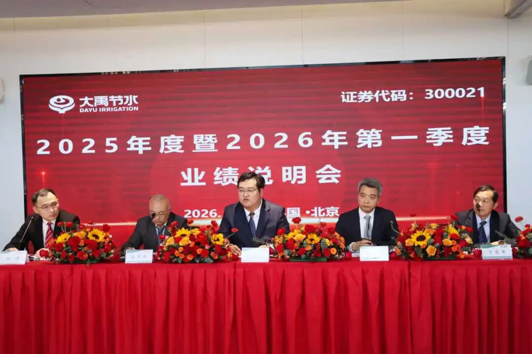 4月28日下午,大禹节水集团股份有限公司2025年度暨2026年第一季度业绩说明会在北京研发中心圆满召开,公司以线上线下相结合的方式,面对资本市场深度解读了经营成果、战略布局与未来规划,全方位展现全链条发展新动态。