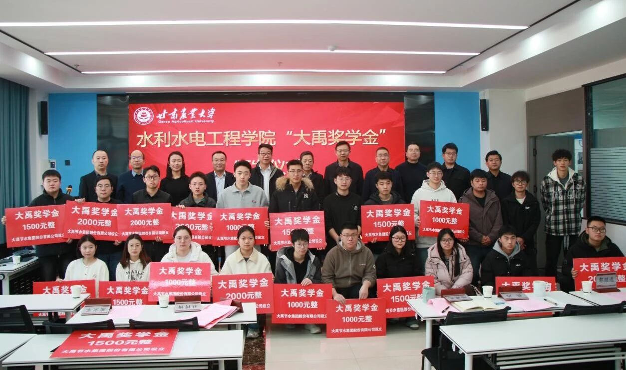12月24日,由大禹节水集团股份有限公司设立的“大禹奖学金”颁发仪式在甘肃农业大学水利水电工程学院隆重举行。甘肃农业大学党委常委、副校长马国军,大禹节水集团党委书记王冲、西北总公司总裁张战祥出席仪式。水利水电工程学院党委书记刘娟主持活动。